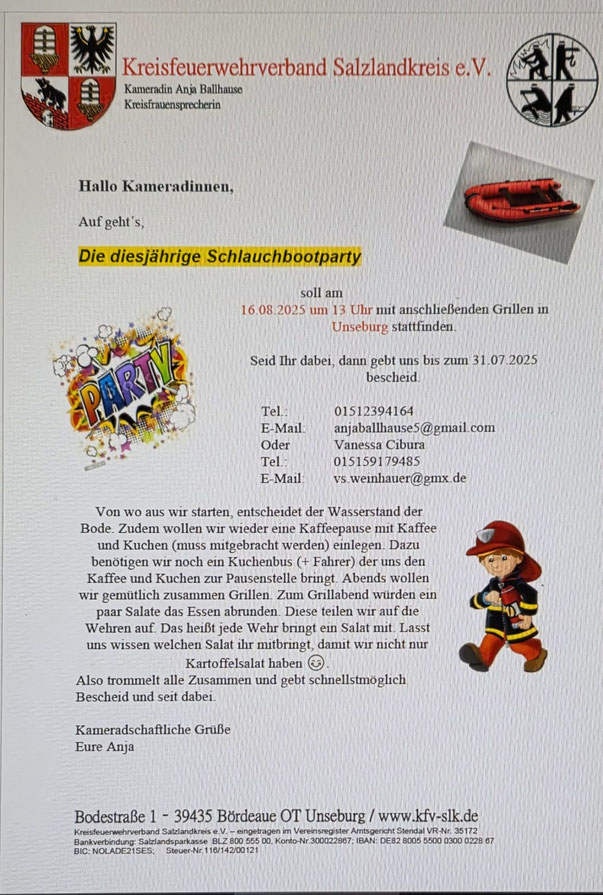 Am 16. August 2025 fand die jährliche Schlauchboot-Party der Feuerwehrfrauen des Salzlandkreises statt.