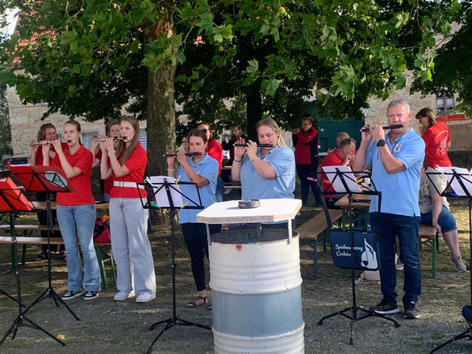 Gut gelaunt und gestärkt griffen viele Spielleute auch am Abend noch einmal zu den Instrumenten, um gemeinsam weitere Stücke zu spielen. Der Tag klang schließlich in gemütlicher Runde aus.